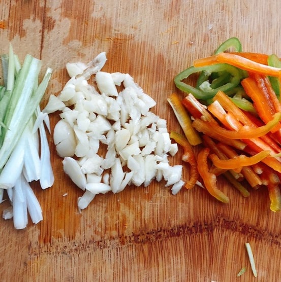 쪽파, 다진마늘, 파프리카를 콩나물 크기로 준비해줍니다~