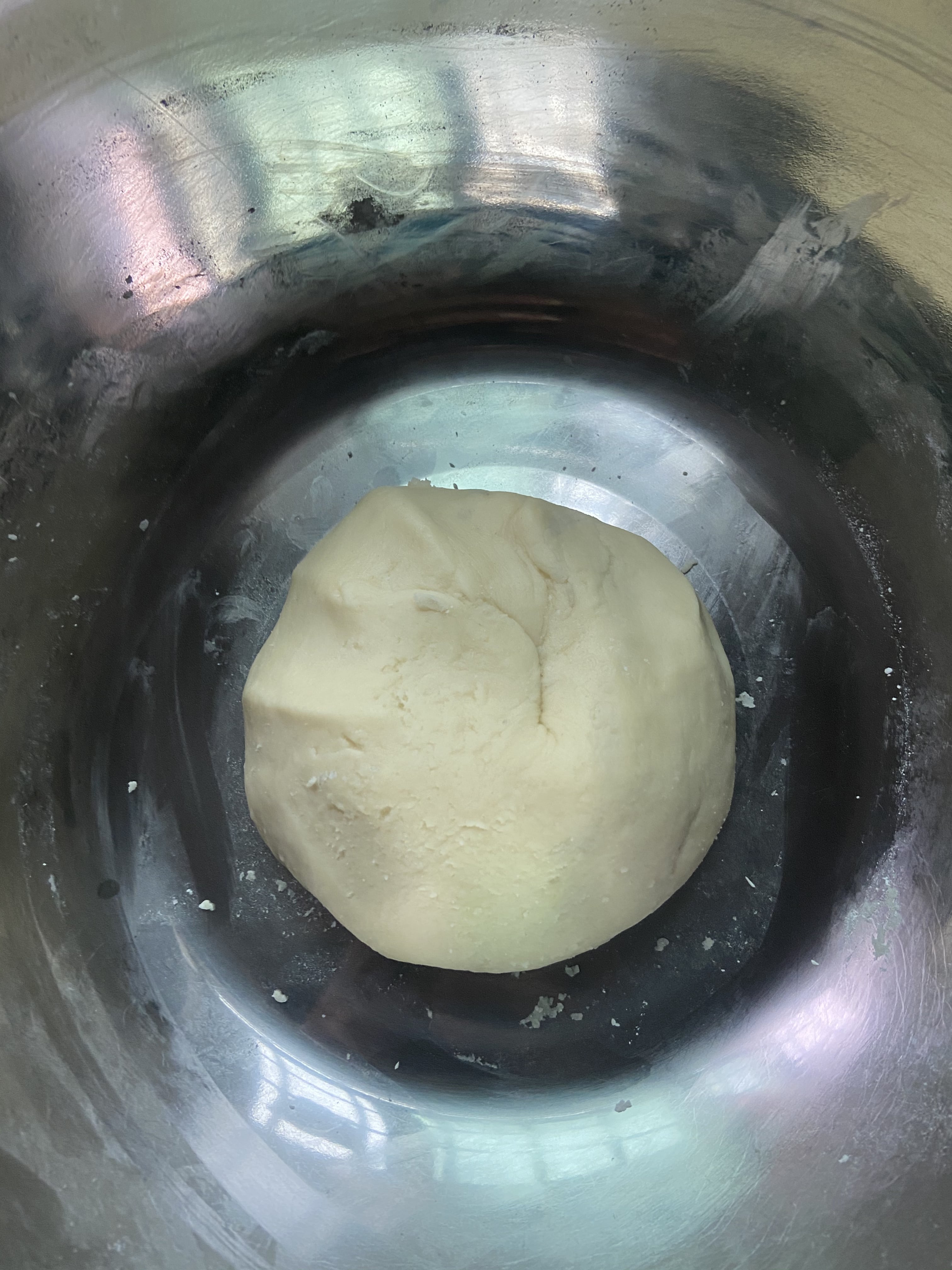 이제 전부 밀가루에 부어주시고 잘 반죽해줍니다. 반죽이 끝나면 그대로 10분정도 쉼.