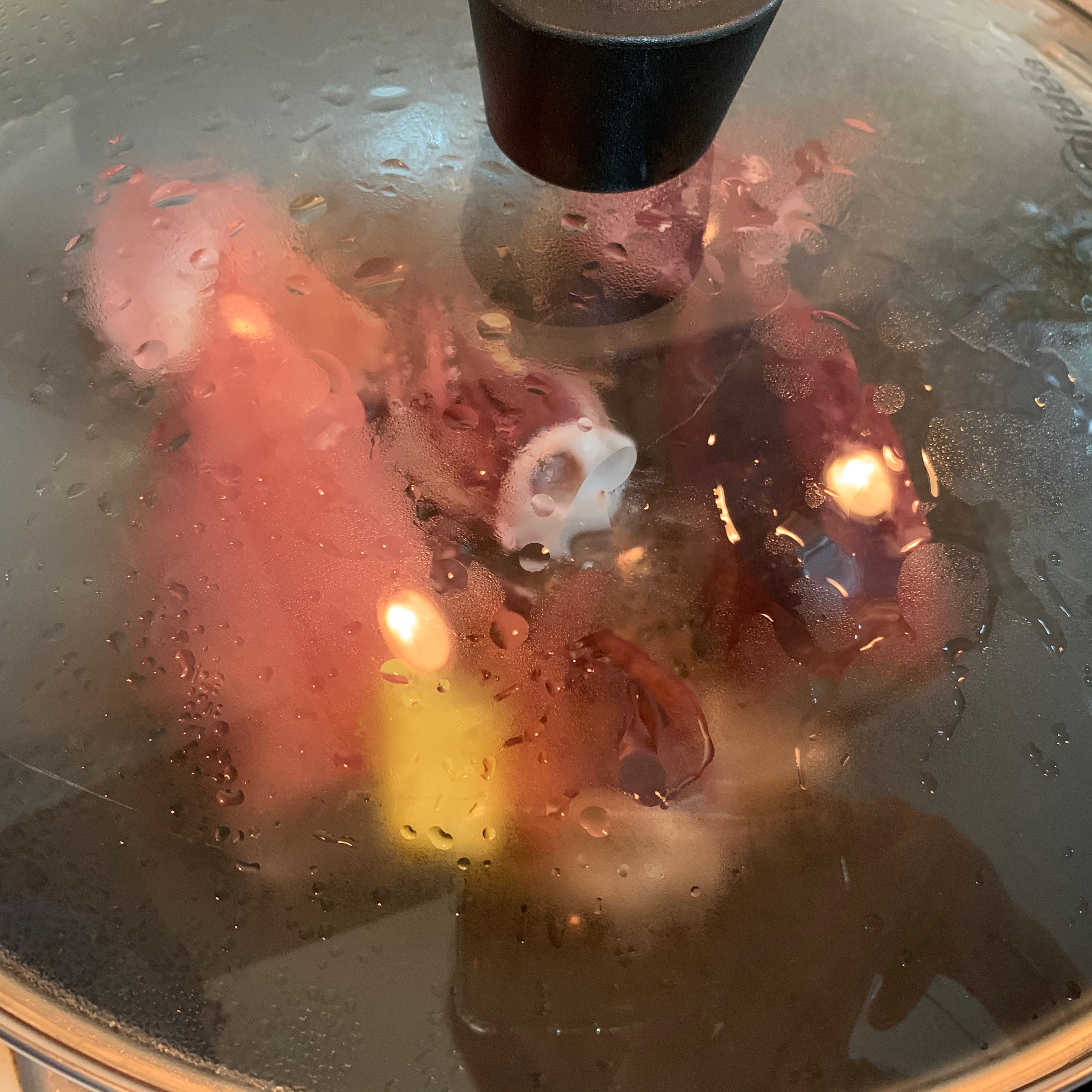 뚜껑을 닫아주시고~ 중불로 올려주세요~ 잠시 후 오징어가 약간 빵빵해졌을 뚜껑을 열어주시고~