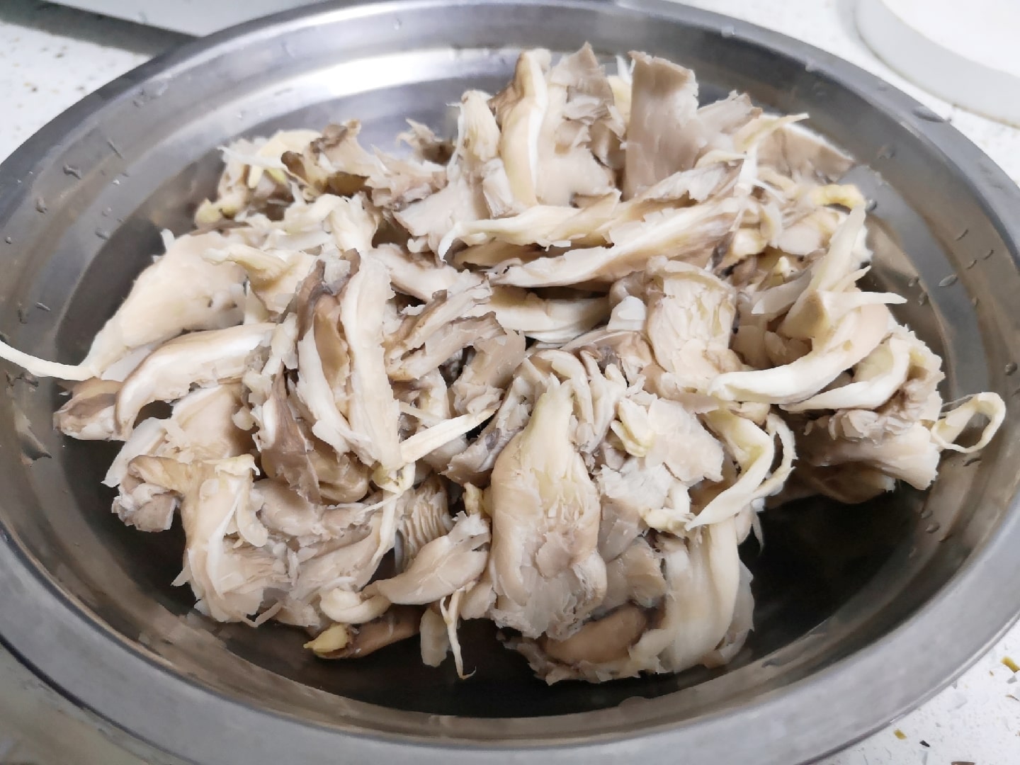 버섯은 깨끗하게 씻은다음 먹기좋은 크기로 찢어주세요~ 그 다음 소금약간 넣어주시고 대기 해주세요.