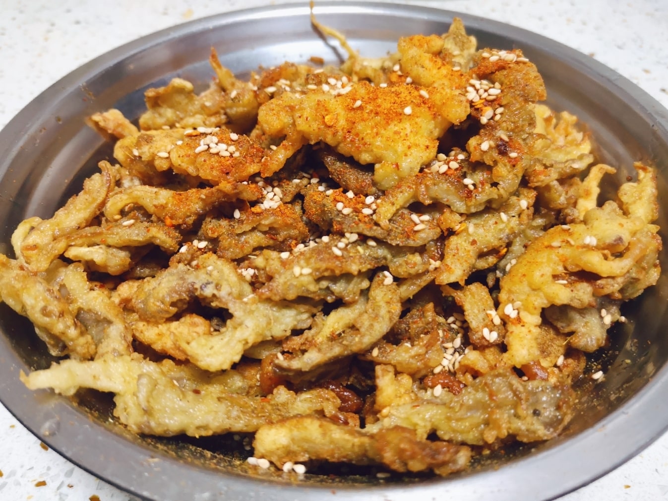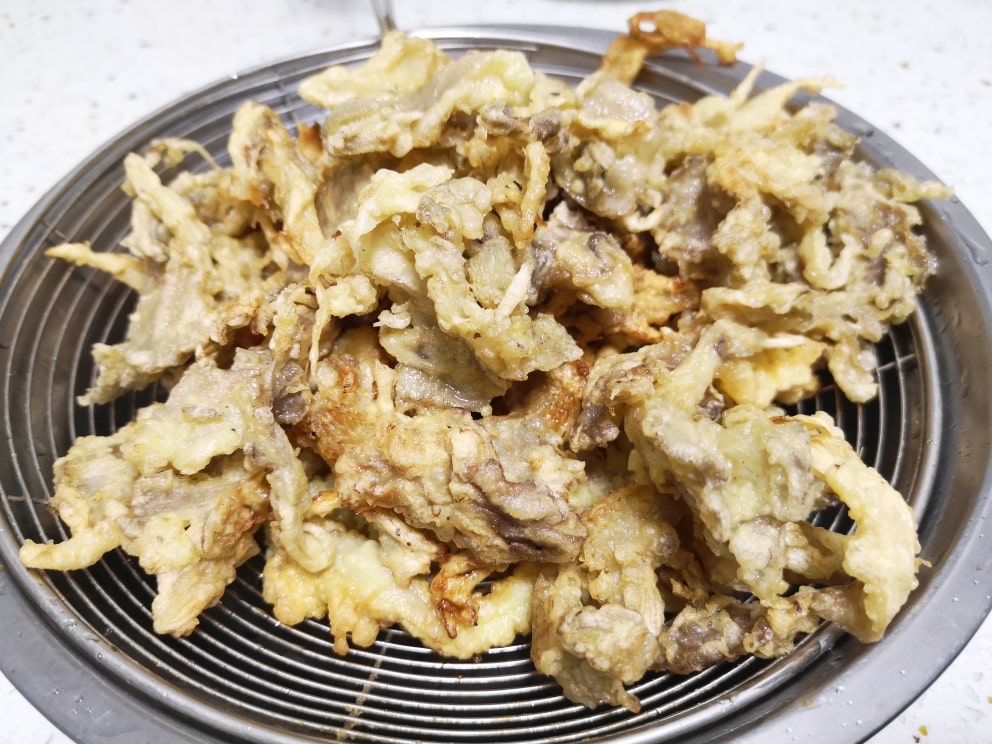 이제 다됐내요~ 노란빛갈에 맛있는 버섯튀김 완성입니다~!
