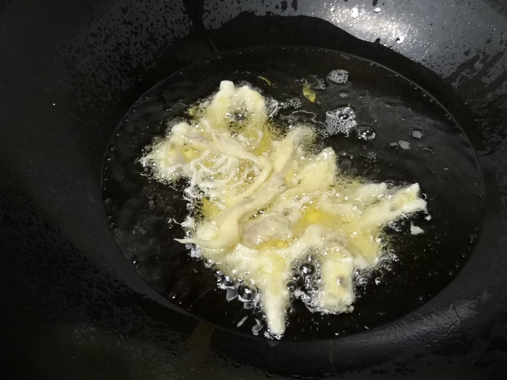 초벌로 한번 튀긴다음 빼서 한숨 식혀줍니다. 그다음 똑같이 한번더 튀겨줄거에요~