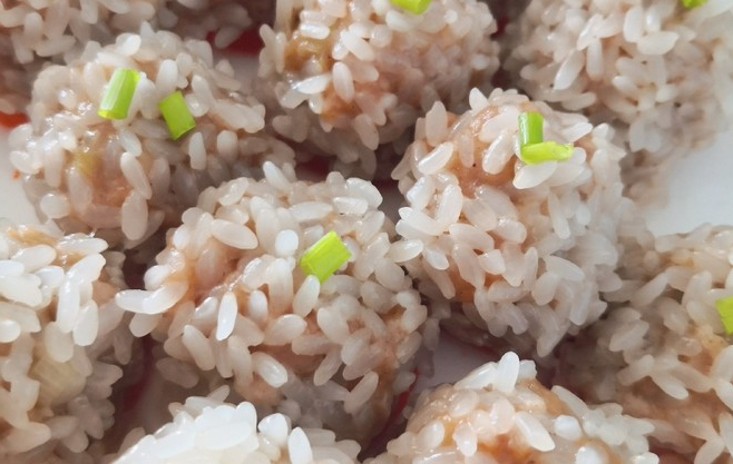 이제 다 왔어요~! 쉽죵? 고기완자를 먹기좋은 크기로 떼어서 찹쌀위에 굴려주세요~ 빈틈없이 많이 묻혀주시면 좋아요~